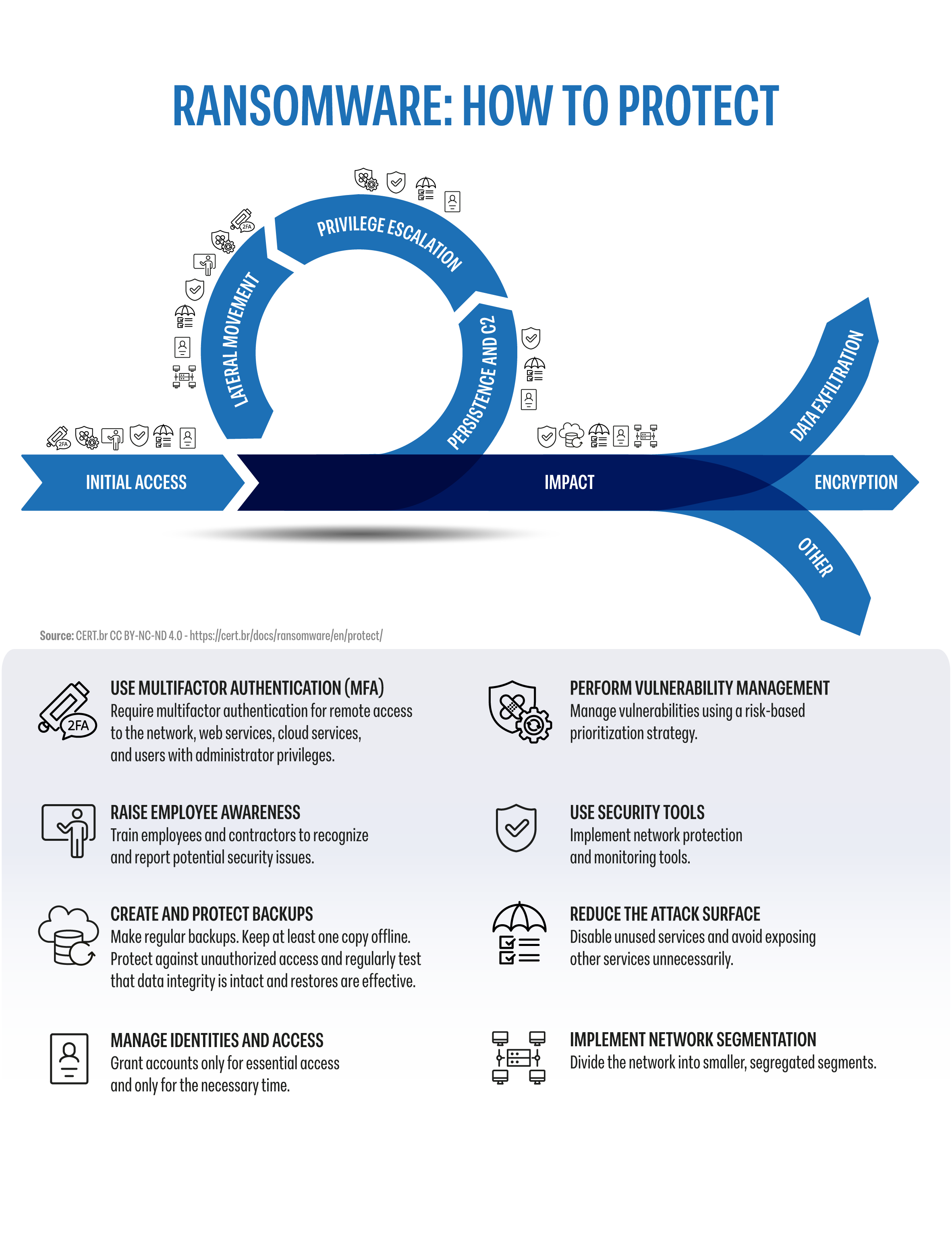 In the 4 parts of this document, you will find a description of how a ransomware attack occurs and best practices for protecting against, detecting, and responding to these attacks.