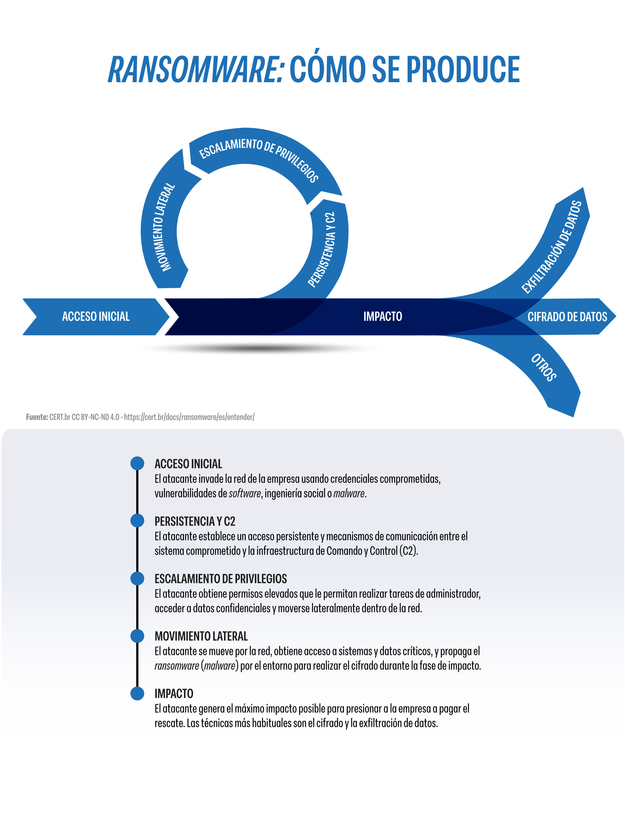 Comprender cómo se producen los ataques de ransomware ayuda a definir medidas de protección, detección y respuesta ante estos incidentes. Este documento explica el modelo RaaS (Ransomware as a Service) y las fases de un ataque.